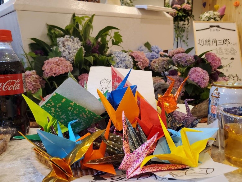 ・折鶴に思い思いのメッセージを綴っていき、暖かいご葬儀になりました